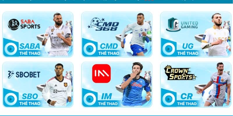 Không chỉ có một mà nơi đây còn sở hữu tới 6 dịch vụ cá cược thể thao bao gồm SABA, CMD, UG, CR, IM và SBO. Do đó, quý khách hàng có thể lựa chọn địa điểm phù hợp nhất với thế mạnh của bản thân.