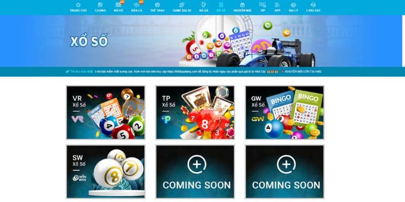 Bước 4: Khi đã có ngân lượng trong ví game thì thành viên bắt đầu hành trình tham gia bằng cách click vào mục “Xổ Số”. Sau đó sẽ xuất hiện nhiều thể loại như VR, TP, SW, GW. Việc của bạn bây giờ là lựa chọn tựa game yêu thích và trải nghiệm cá cược.